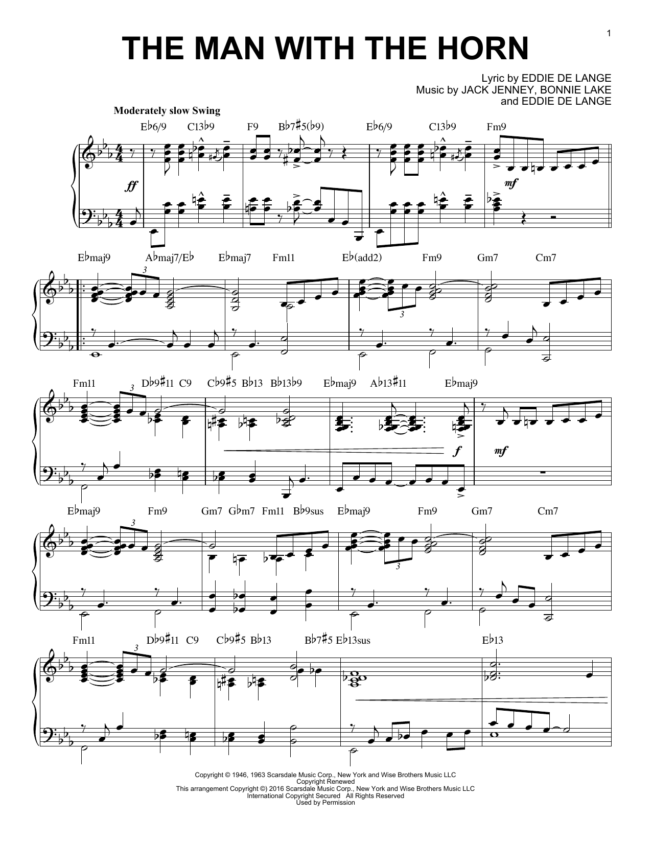 Download or print Eddie De Lange The Man With The Horn [Jazz version] (arr. Brent Edstrom) sheet music, chords and digital score arranged for Piano Solo. This Jazz score includes 4 page(s).