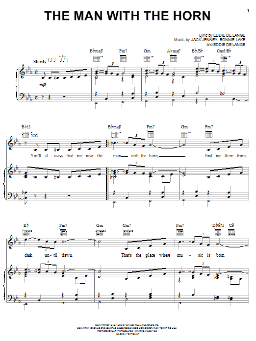 Download or print Eddie DeLange The Man With The Horn sheet music, chords and digital score arranged for Piano, Vocal & Guitar Chords (Right-Hand Melody). This Jazz score includes 4 page(s).