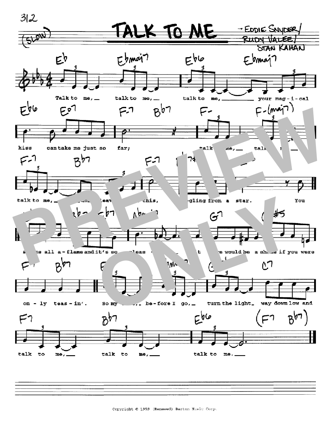 Download or print Eddie Snyder Talk To Me sheet music, chords and digital score arranged for Easy Lead Sheet / Fake Book. This Pop score includes 1 page(s).