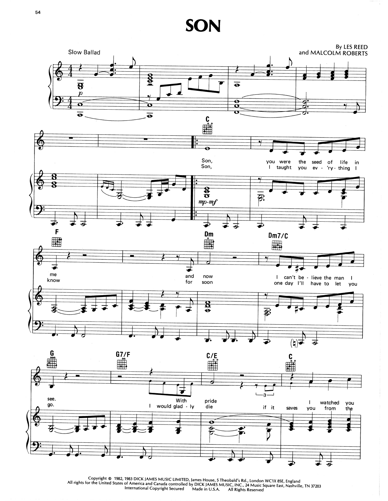 Download or print Eddy Arnold Son sheet music, chords and digital score arranged for Piano, Vocal & Guitar Chords (Right-Hand Melody). This Country score includes 3 page(s).
