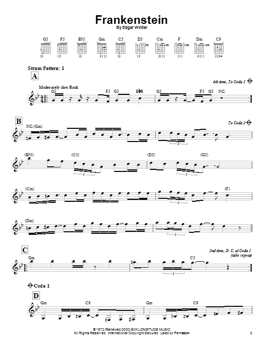 Download or print Edgar Winter Group Frankenstein sheet music, chords and digital score arranged for Keyboard Transcription. This Pop score includes 12 page(s).