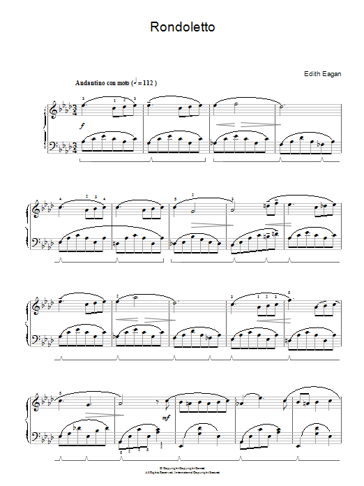 Download or print Edith Eagan Rondoletto sheet music, chords and digital score arranged for Piano Solo. This Classical score includes 5 page(s).