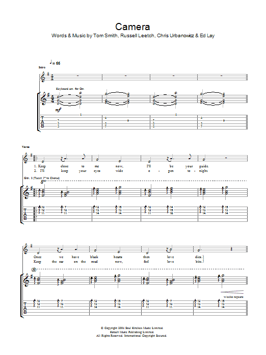 Download or print Editors Camera sheet music, chords and digital score arranged for Guitar Tab. This Rock score includes 4 page(s).