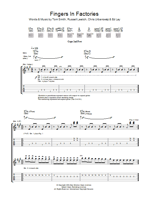 Download or print Editors Fingers In The Factories sheet music, chords and digital score arranged for Guitar Tab. This Rock score includes 6 page(s).