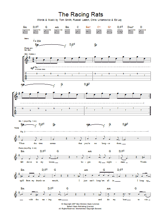 Download or print Editors The Racing Rats sheet music, chords and digital score arranged for Guitar Tab. This Pop score includes 6 page(s).
