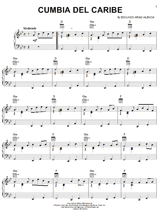 Download or print Edmundo Arias Valencia Cumbia Del Caribe sheet music, chords and digital score arranged for Piano, Vocal & Guitar Chords (Right-Hand Melody). This Latin score includes 4 page(s).