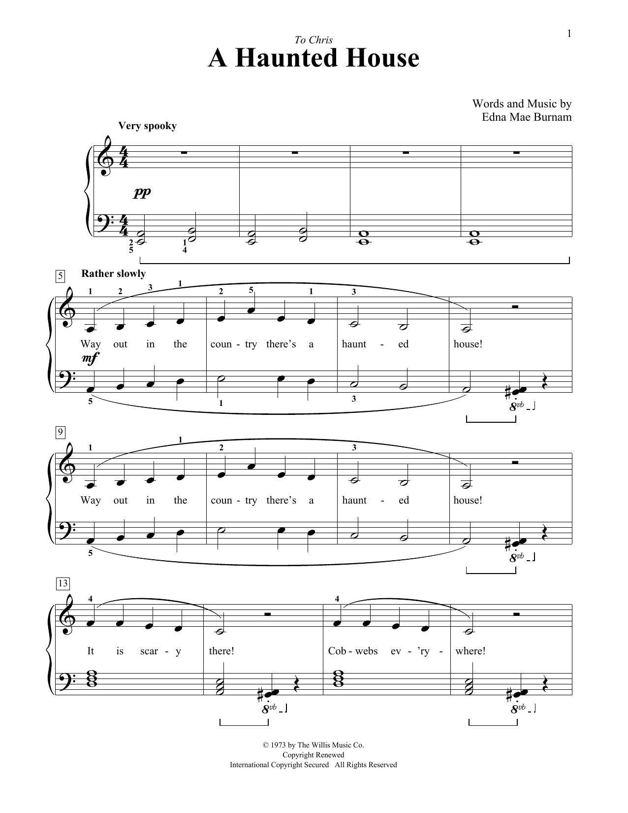 Download or print Edna Mae Burnam A Haunted House sheet music, chords and digital score arranged for Educational Piano. This Halloween score includes 3 page(s).