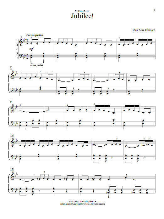 Download or print Edna Mae Burnam Jubilee! sheet music, chords and digital score arranged for Educational Piano. This Pop score includes 4 page(s).