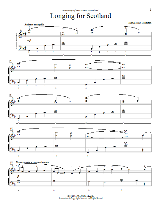 Download or print Edna Mae Burnam Longing For Scotland sheet music, chords and digital score arranged for Educational Piano. This Pop score includes 2 page(s).