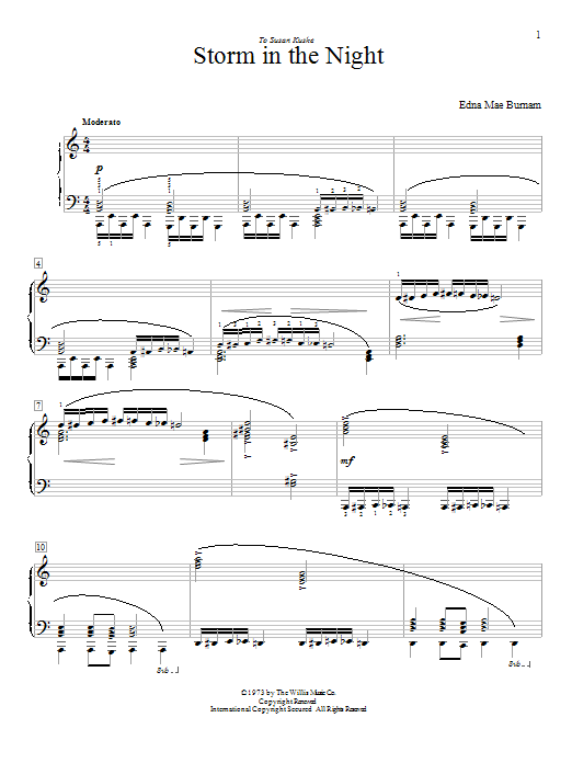 Download or print Edna Mae Burnam Storm In The Night sheet music, chords and digital score arranged for Educational Piano. This Pop score includes 4 page(s).