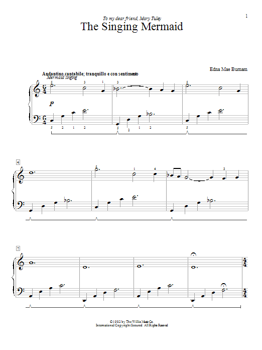 Download or print Edna Mae Burnam The Singing Mermaid sheet music, chords and digital score arranged for Educational Piano. This Pop score includes 3 page(s).