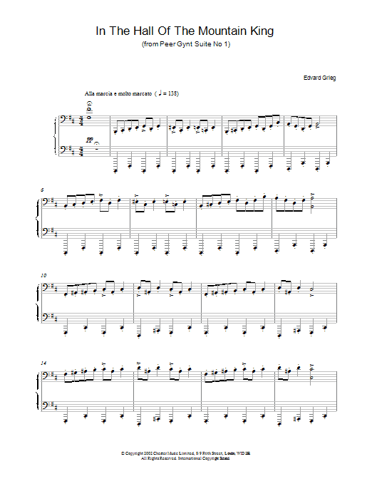 Download or print Edvard Grieg In The Hall Of The Mountain King sheet music, chords and digital score arranged for Beginning Piano Solo. This Classical score includes 2 page(s).