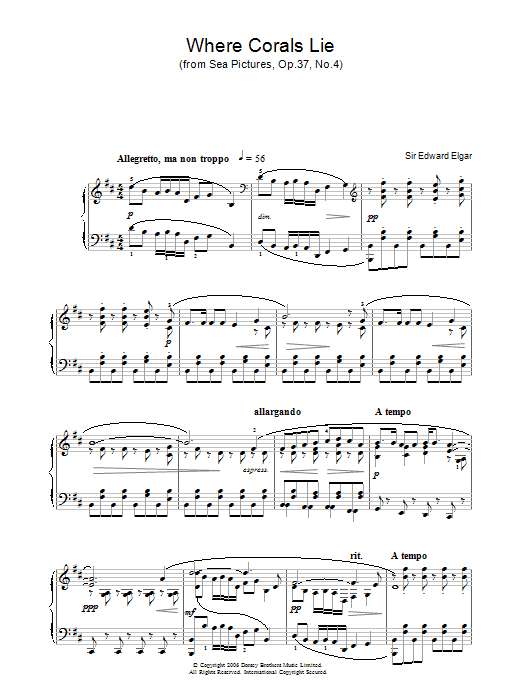 Download or print Edward Elgar Where Corals Lie (from Sea Pictures, Op.37, No.4) sheet music, chords and digital score arranged for Piano Solo. This Classical score includes 2 page(s).