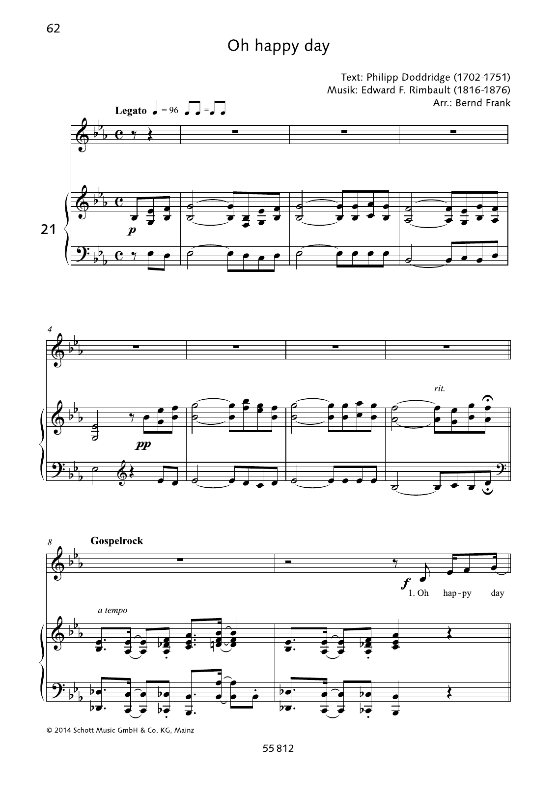 Download or print Edward F. Rimbault Oh Happy Day sheet music, chords and digital score arranged for Piano & Vocal. This Gospel score includes 4 page(s).