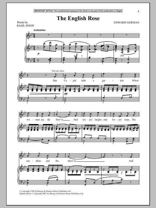 Download or print Edward German The English Rose sheet music, chords and digital score arranged for Piano & Vocal. This Folk score includes 5 page(s).