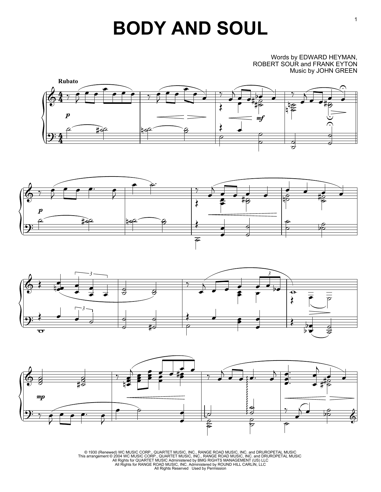 Download or print John Green Body And Soul (arr. Phillip Keveren) sheet music, chords and digital score arranged for Easy Piano. This Jazz score includes 3 page(s).