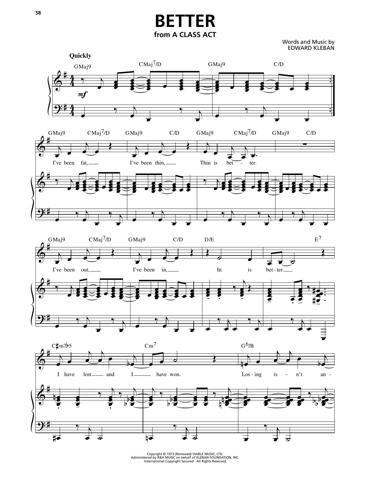 Download or print Edward Kleban Better (from A Class Act: A Musical About Muscials) sheet music, chords and digital score arranged for Piano, Vocal & Guitar Chords (Right-Hand Melody). This Pop score includes 5 page(s).