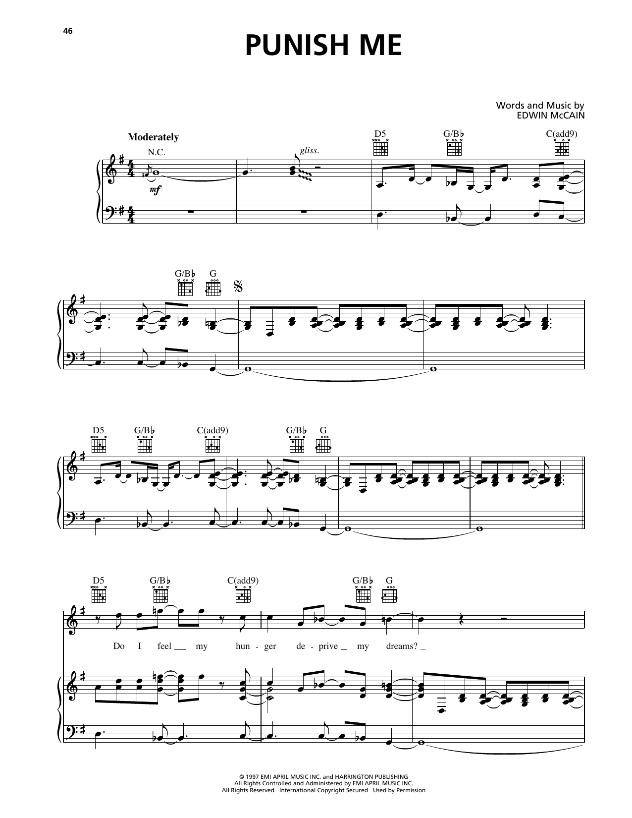 Download or print Edwin McCain Punish Me sheet music, chords and digital score arranged for Piano, Vocal & Guitar Chords (Right-Hand Melody). This Pop score includes 7 page(s).