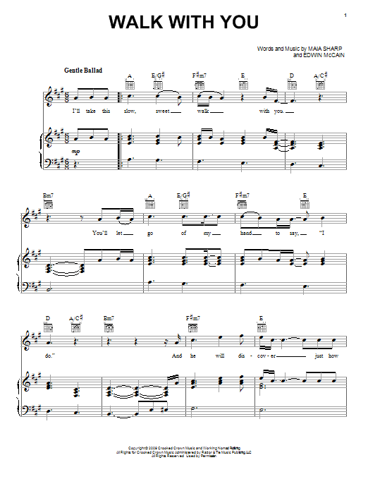 Download or print Edwin McCain Walk With You sheet music, chords and digital score arranged for Piano, Vocal & Guitar Chords (Right-Hand Melody). This Pop score includes 6 page(s).
