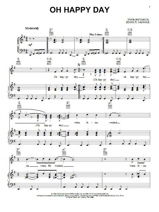 Download or print Edwin R. Hawkins Oh Happy Day sheet music, chords and digital score arranged for Easy Piano. This Rock score includes 7 page(s).