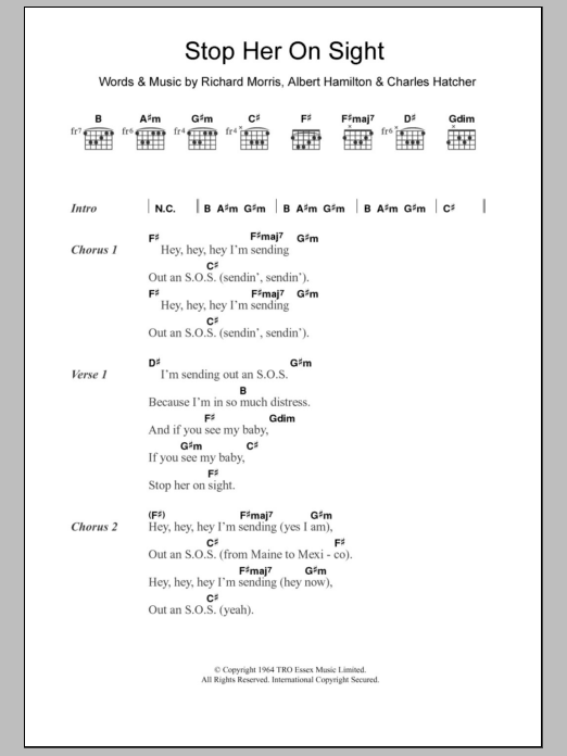 Download or print Edwin Starr Stop Her On Sight sheet music, chords and digital score arranged for Guitar Chords/Lyrics. This Soul score includes 3 page(s).