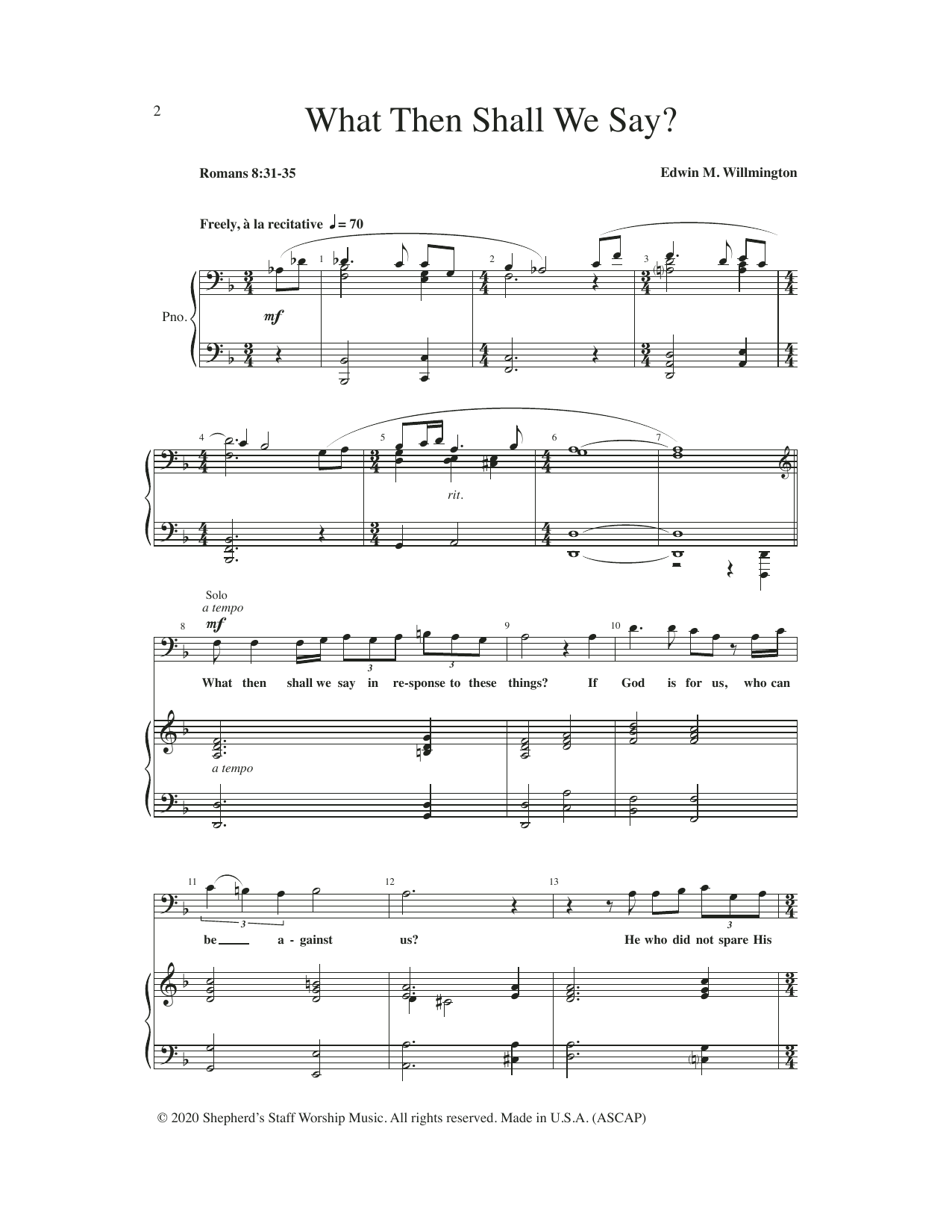 Download or print Edwin Willmington What Then Shall We Say? sheet music, chords and digital score arranged for SATB Choir. This Sacred score includes 18 page(s).