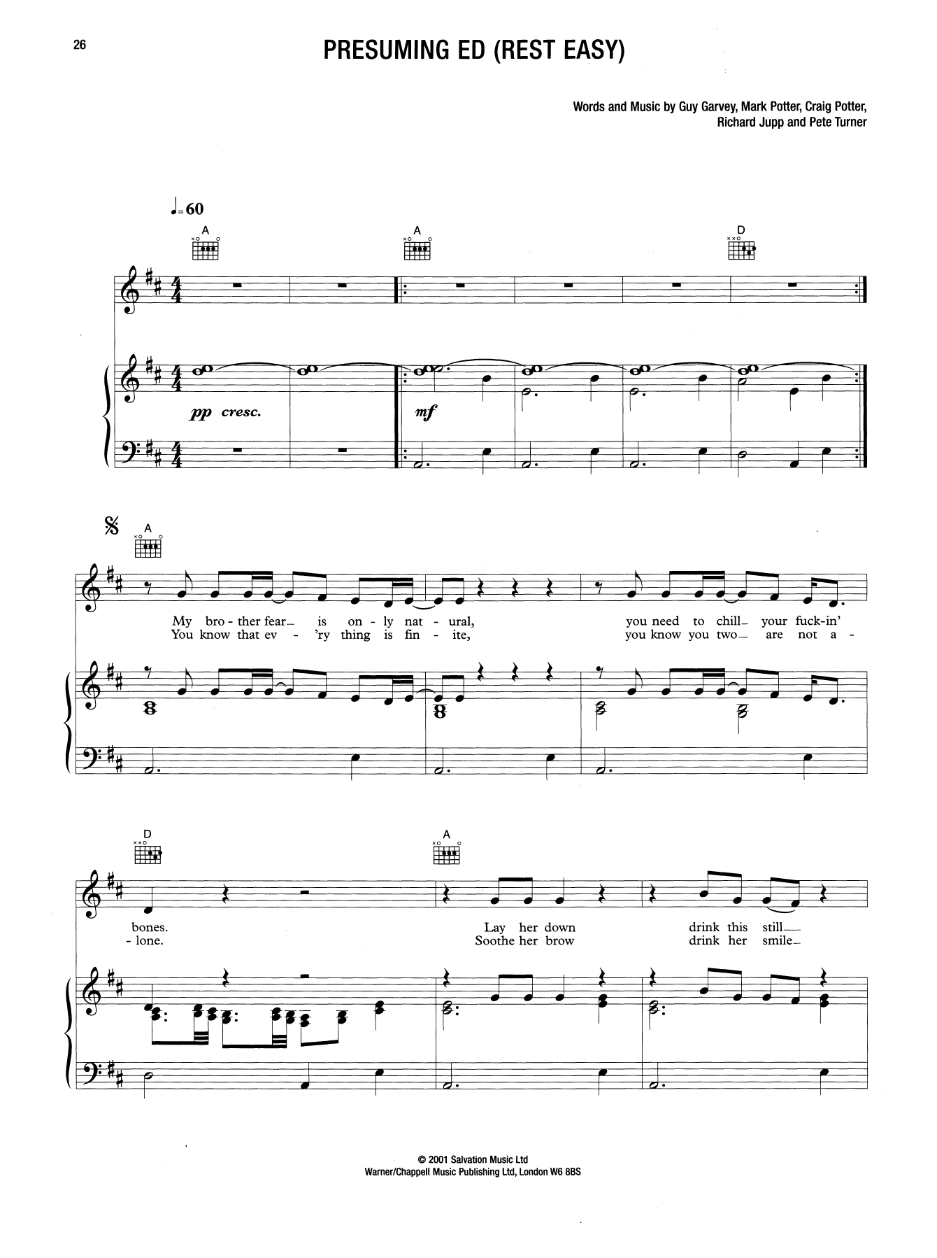 Download or print Elbow Presuming Ed (Rest East) sheet music, chords and digital score arranged for Guitar Tab. This Alternative score includes 4 page(s).