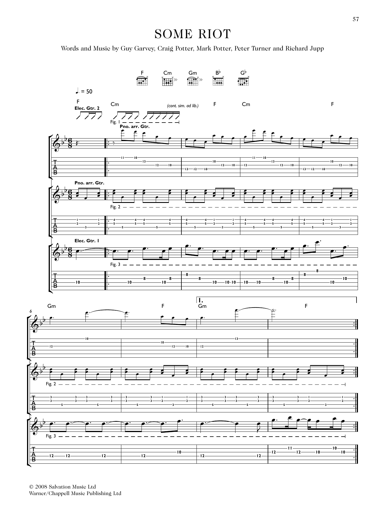 Download or print Elbow Some Riot sheet music, chords and digital score arranged for Guitar Tab. This Alternative score includes 6 page(s).