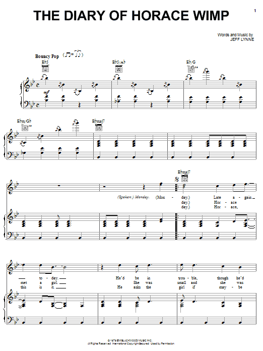 Download or print Electric Light Orchestra Diary Of Horace Wimp sheet music, chords and digital score arranged for Piano, Vocal & Guitar Chords (Right-Hand Melody). This Pop score includes 7 page(s).