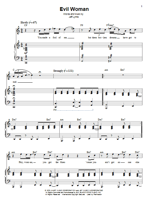 Download or print Electric Light Orchestra Evil Woman sheet music, chords and digital score arranged for Easy Piano. This Rock score includes 7 page(s).