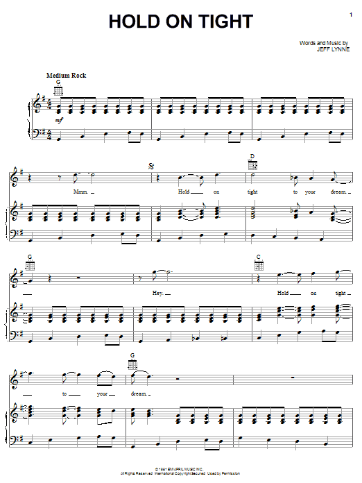 Download or print Electric Light Orchestra Hold On Tight sheet music, chords and digital score arranged for Piano, Vocal & Guitar Chords (Right-Hand Melody). This Pop score includes 6 page(s).