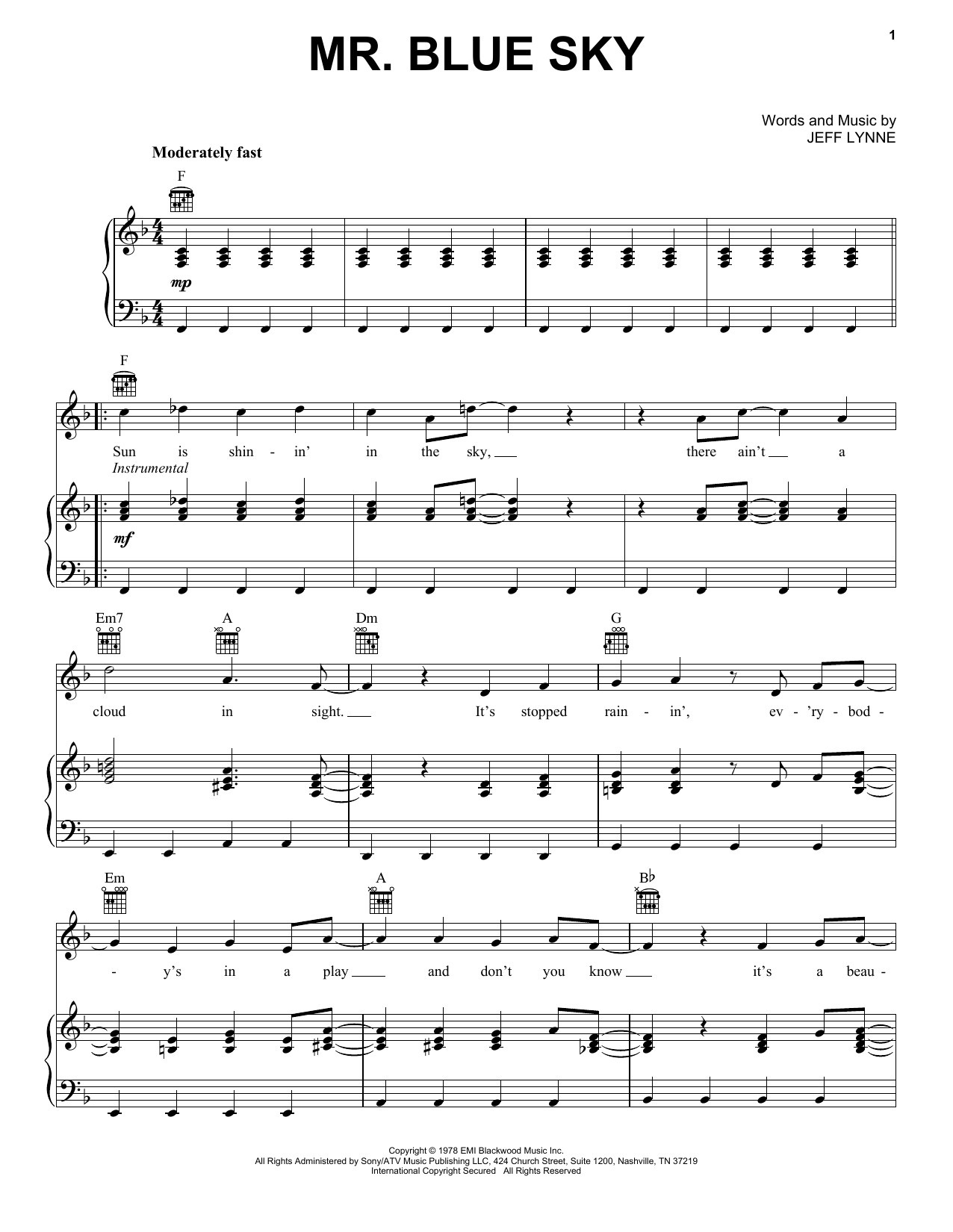 Quick facts Mr. Blue Sky about digital sheet music
