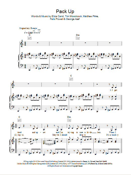 Download or print Eliza Doolittle Pack Up sheet music, chords and digital score arranged for Piano, Vocal & Guitar Chords (Right-Hand Melody). This Pop score includes 5 page(s).