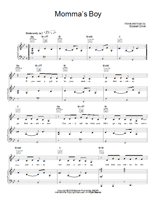 Download or print Elizabeth & The Catapult Momma's Boy sheet music, chords and digital score arranged for Piano, Vocal & Guitar Chords (Right-Hand Melody). This Pop score includes 8 page(s).