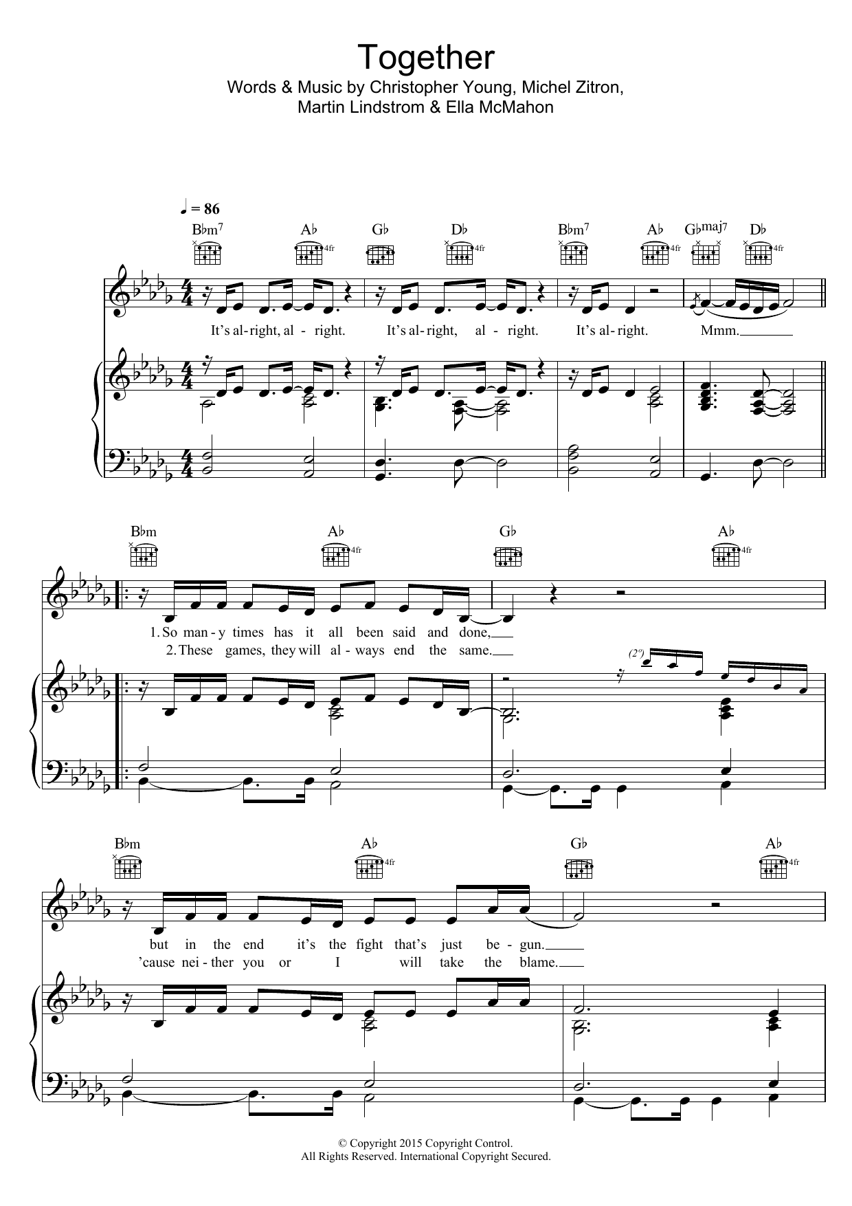 Download or print Ella Eyre Together sheet music, chords and digital score arranged for Piano, Vocal & Guitar Chords. This Pop score includes 5 page(s).