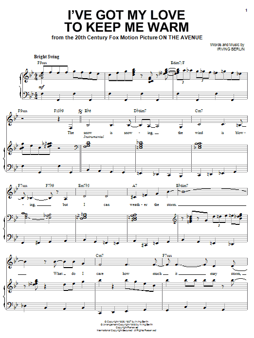 Download or print Ella Fitzgerald I've Got My Love To Keep Me Warm sheet music, chords and digital score arranged for Piano & Vocal. This Christmas score includes 5 page(s).