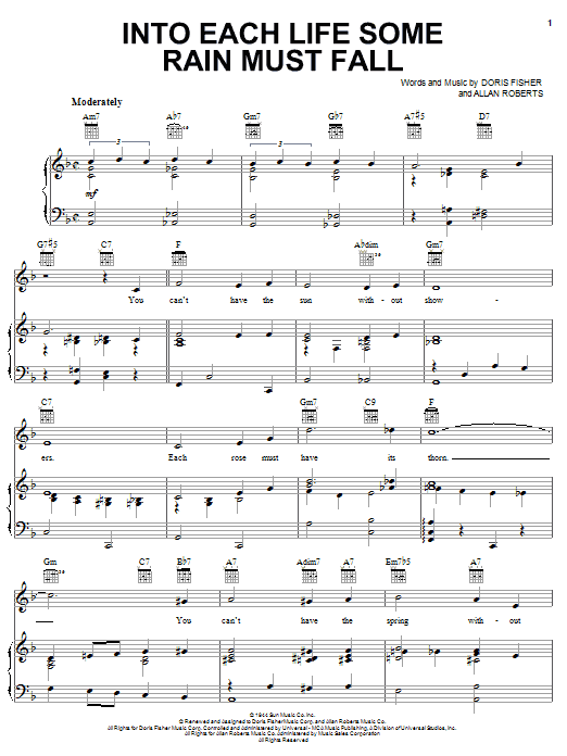 Download or print Ella Fitzgerald Into Each Life Some Rain Must Fall sheet music, chords and digital score arranged for Piano, Vocal & Guitar Chords (Right-Hand Melody). This Jazz score includes 4 page(s).