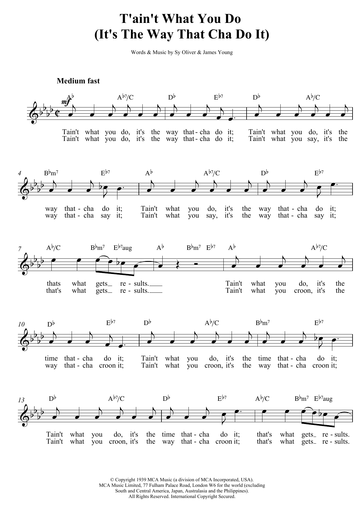 Download or print Ella Fitzgerald Tain't What You Do sheet music, chords and digital score arranged for Lead Sheet / Fake Book. This Jazz score includes 2 page(s).