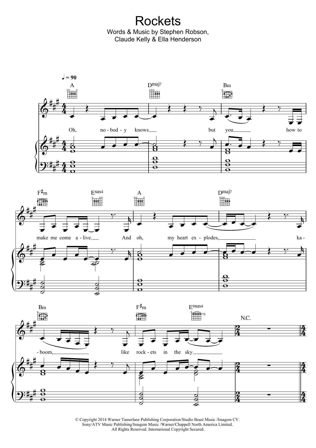 Download or print Ella Henderson Rockets sheet music, chords and digital score arranged for Piano, Vocal & Guitar Chords. This Pop score includes 6 page(s).