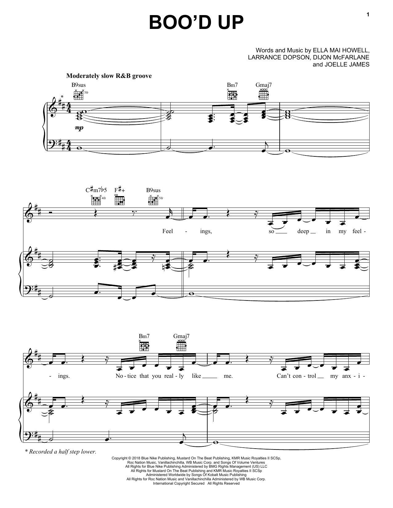 Download or print Ella Mai Boo'd Up sheet music, chords and digital score arranged for Piano, Vocal & Guitar Chords (Right-Hand Melody). This Pop score includes 6 page(s).