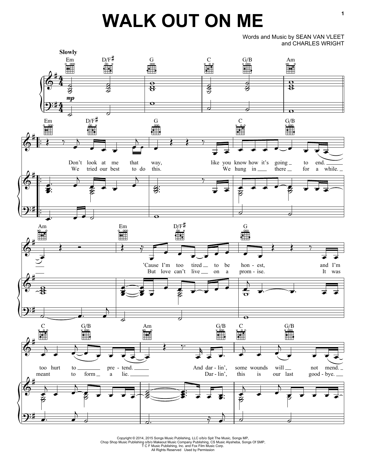 Download or print Elle Dallas featuring Courtney Love Walk Out On Me sheet music, chords and digital score arranged for Piano, Vocal & Guitar Chords (Right-Hand Melody). This Pop score includes 3 page(s).