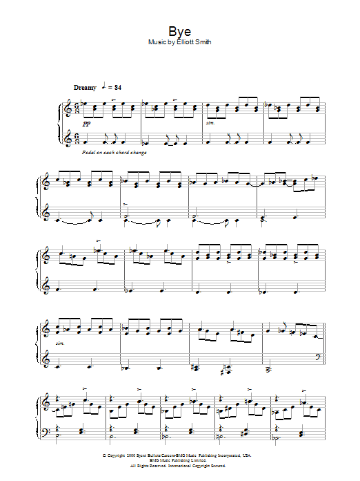 Download or print Elliot Smith Bye sheet music, chords and digital score arranged for Piano Solo. This Standards score includes 3 page(s).