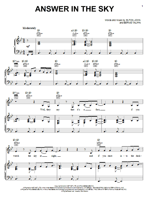 Download or print Elton John Answer In The Sky sheet music, chords and digital score arranged for Guitar Chords/Lyrics. This Pop score includes 3 page(s).