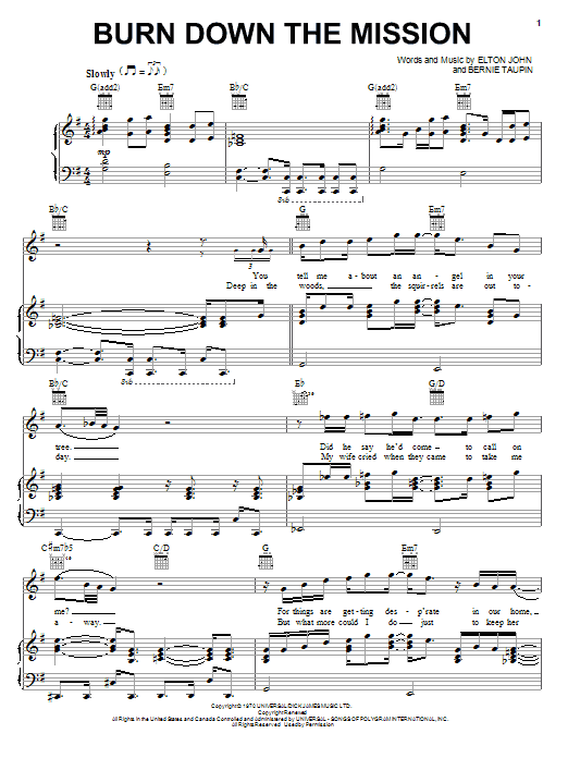 Download or print Elton John Burn Down The Mission sheet music, chords and digital score arranged for Keyboard Transcription. This Pop score includes 19 page(s).