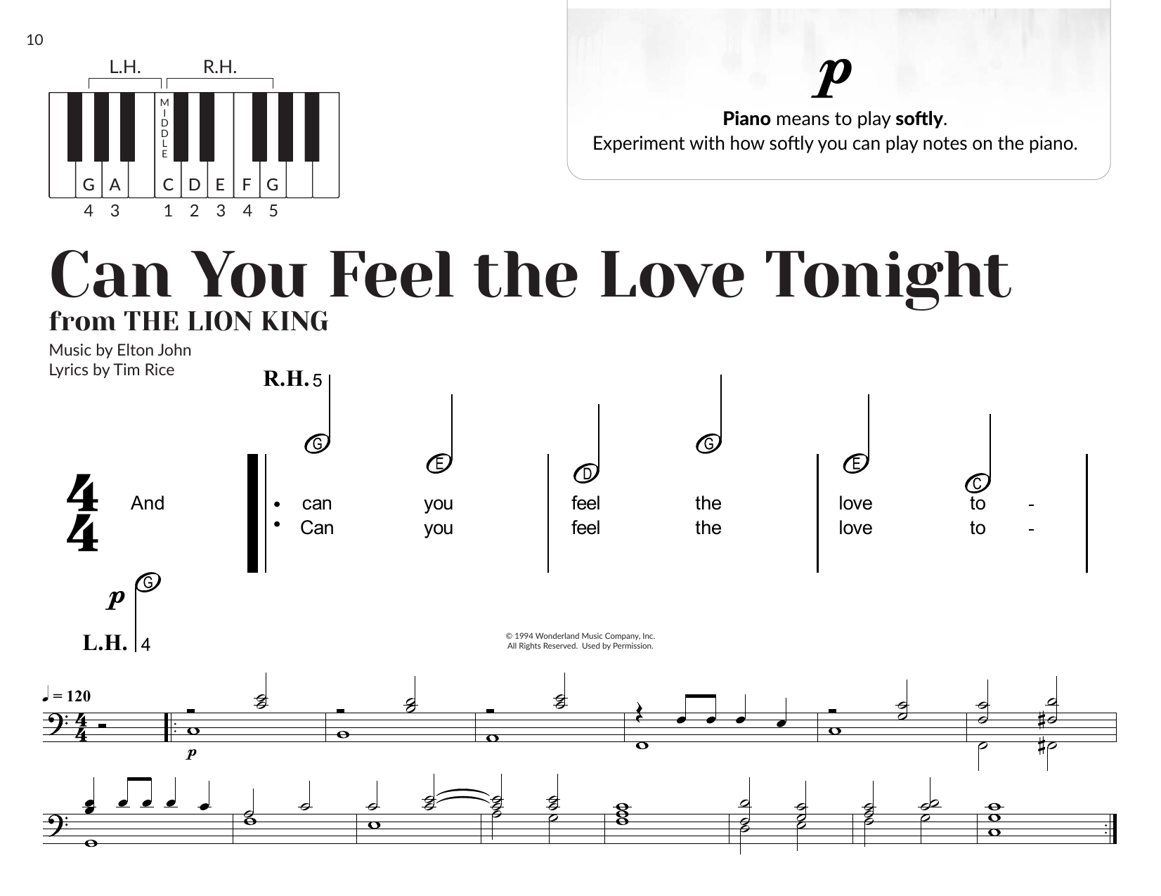 This composition is beautifuly arranged for Very Beginner Piano includes 2 page(s). It is performed by Elton John. The style of the score is 'Disney'. Catalog SKU number of the notation is 1669673.