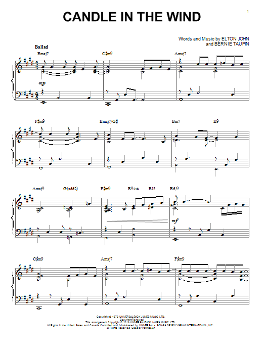 Download or print Elton John Candle In The Wind [Jazz version] (arr. Brent Edstrom) sheet music, chords and digital score arranged for Piano Solo. This Pop score includes 4 page(s).