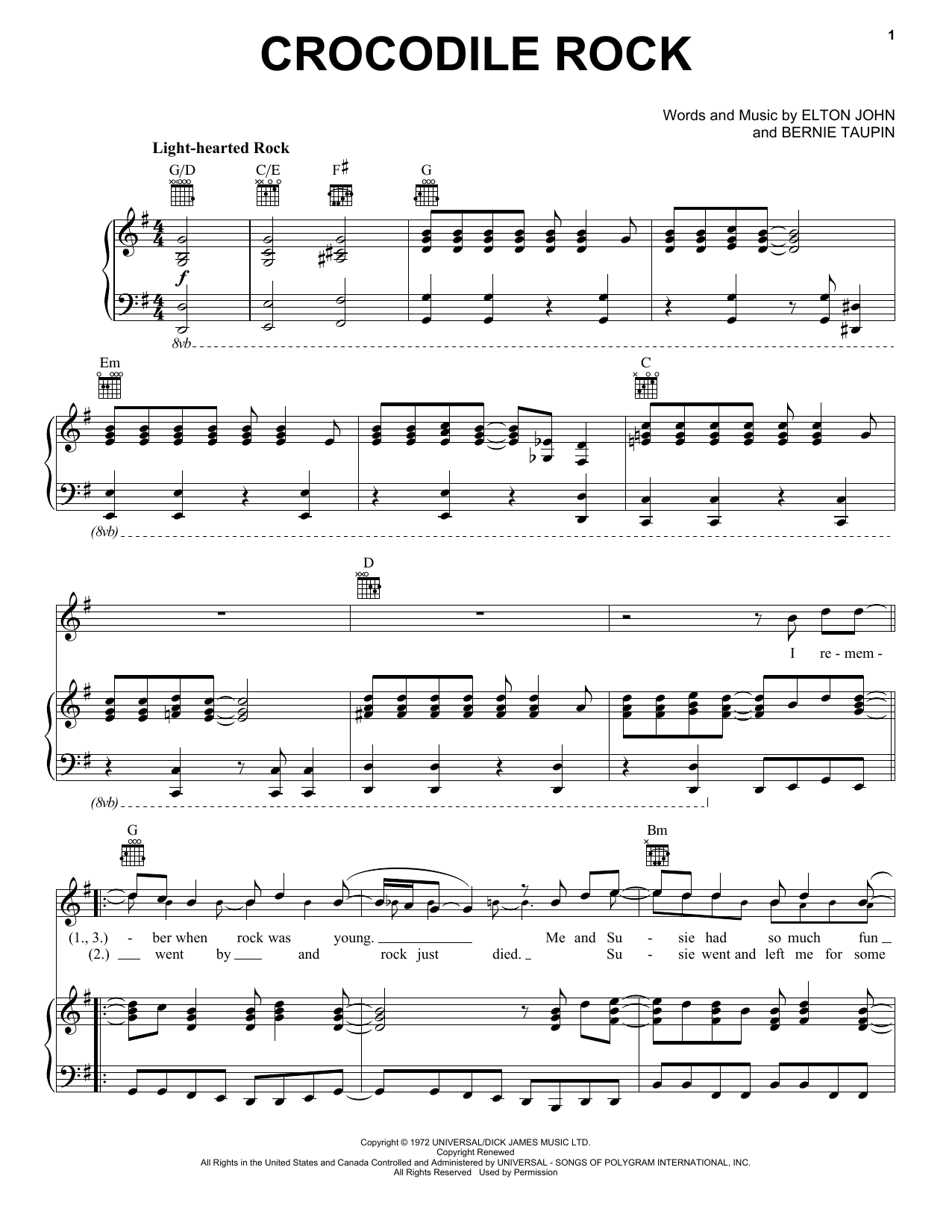 Quick facts Crocodile Rock about digital sheet music
