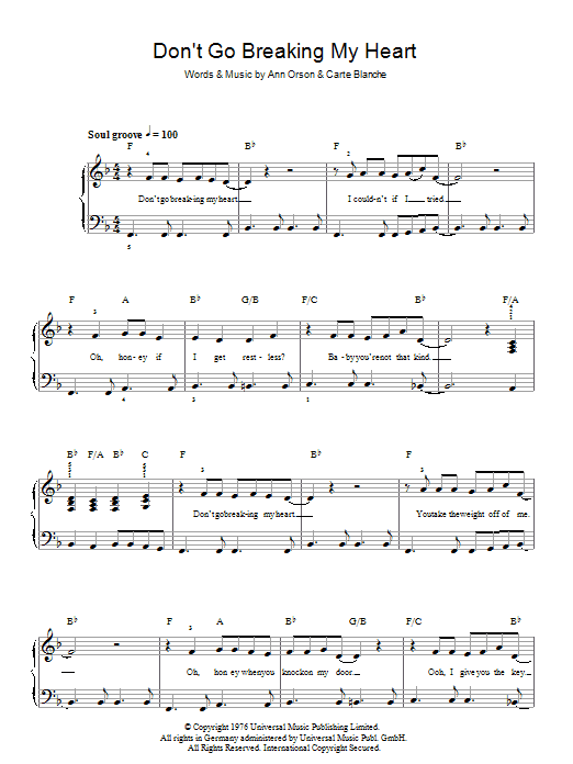 Quick facts Don't Go Breaking My Heart about digital sheet music