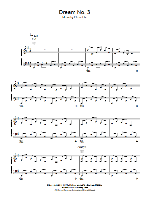 Download or print Elton John Dream #3 (Instrumental) sheet music, chords and digital score arranged for Piano Solo. This Pop score includes 4 page(s).