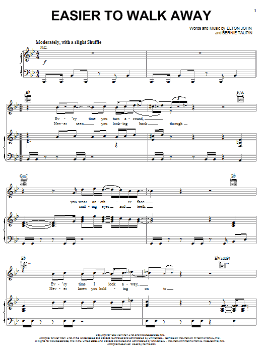 Download or print Elton John Easier To Walk Away sheet music, chords and digital score arranged for Guitar Chords/Lyrics. This Pop score includes 2 page(s).